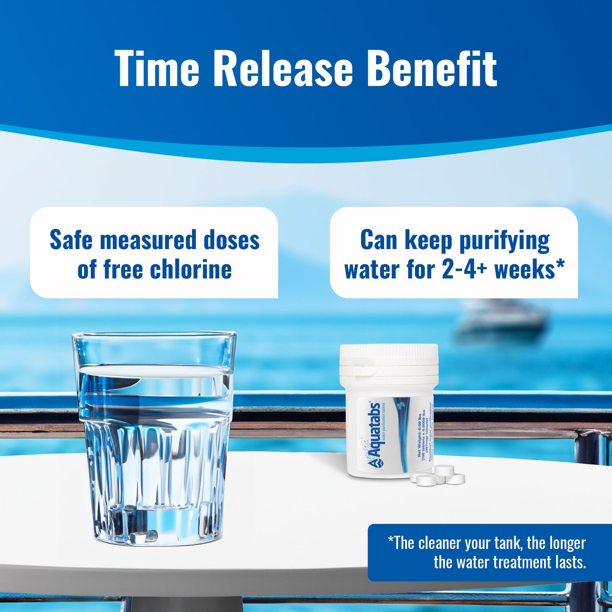 Time-Release Protection: Aquatabs continue to release chlorine for weeks, providing ongoing protection against microorganisms.