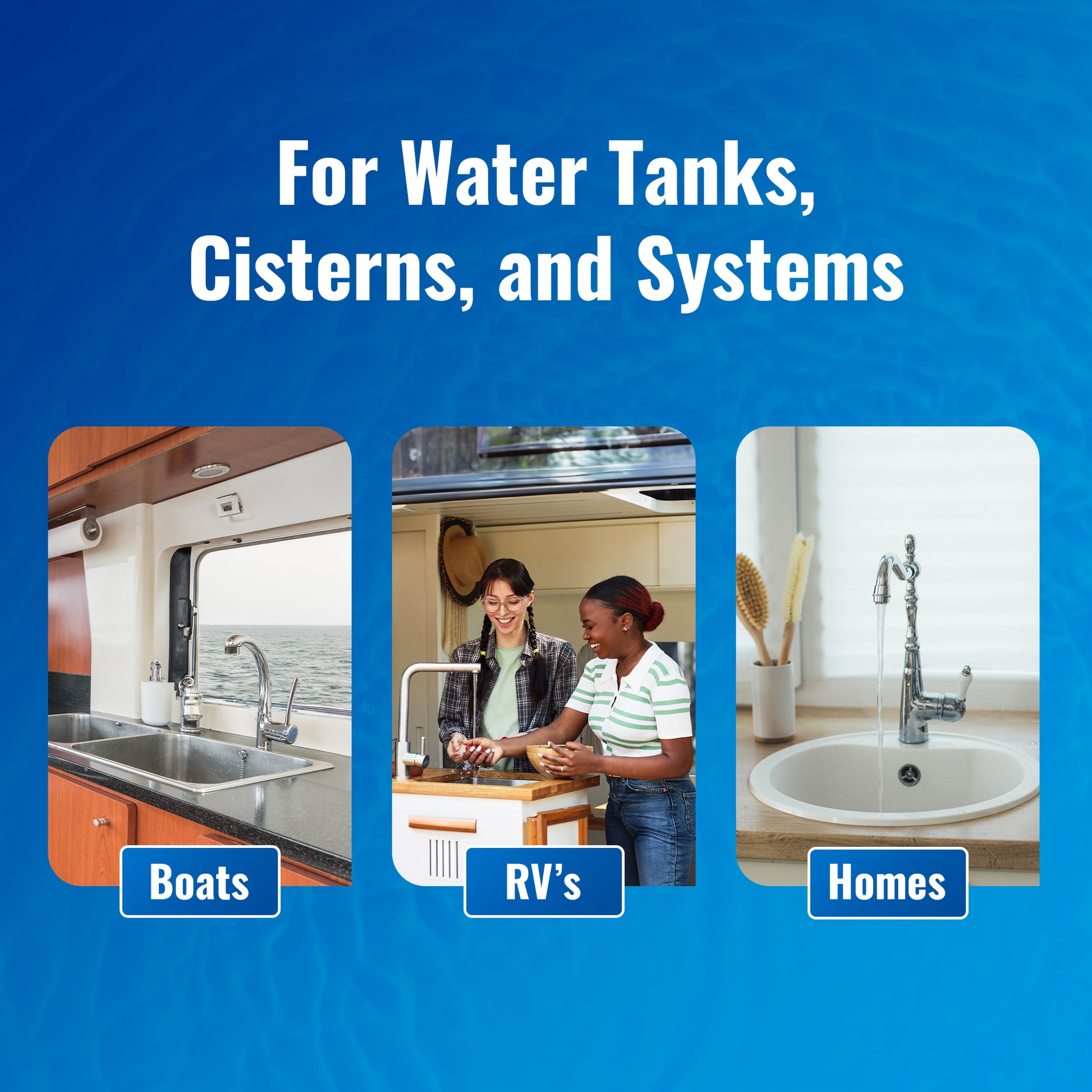 Easily apply to your water system - Just add to the tank, run it through the pipes, and drain. Ideal for boats and RV’s coming out of storage for the new season.