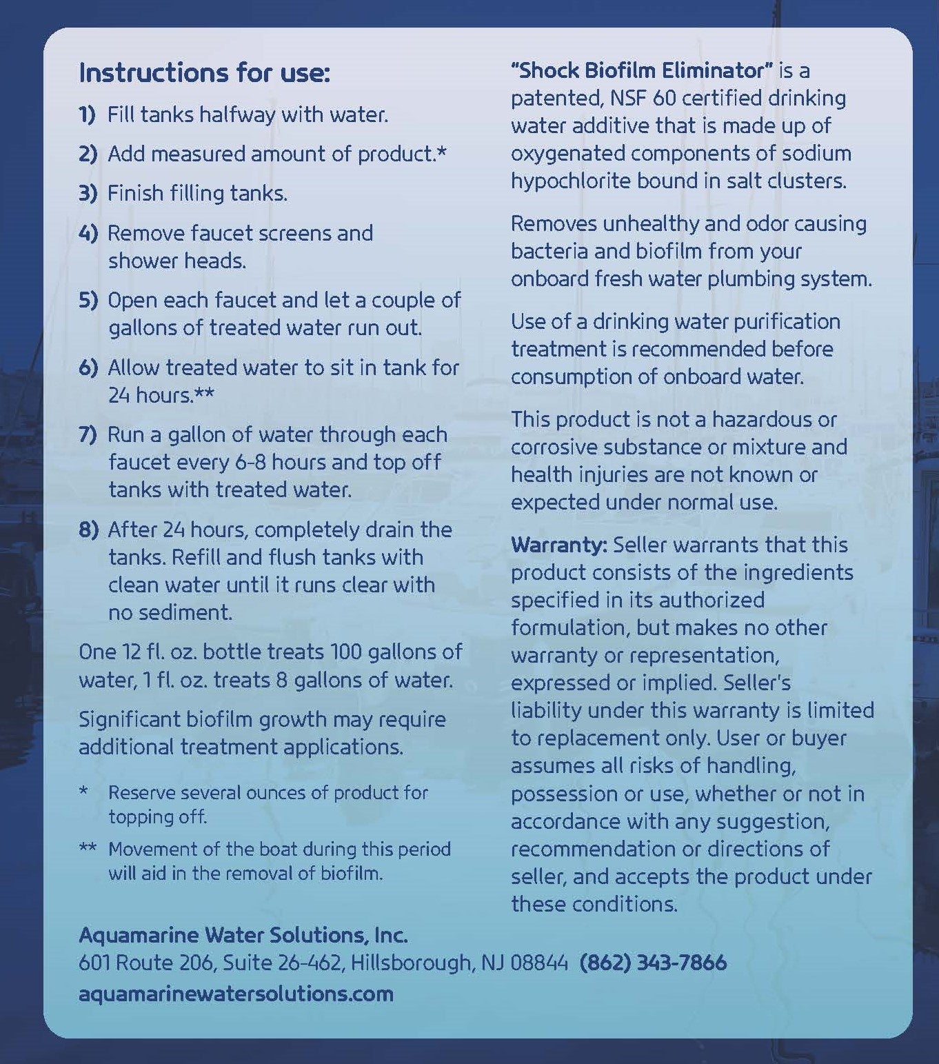 Trusted formula – Use this reliable treatment to thoroughly clean steel, aluminum or plastic fresh water systems. Each bottle treats 100 gallons.