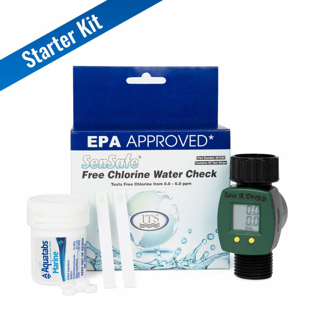 Ensure safe drinking water - Our complete kit provides everything you need to to monitor and maintain your marine vessel or recreational vehicle freshwater system, or for hiking, backpacking, camping, emergency survival, and home-use. Includes 100 Aquatabs water purification tablets, 50 chemical-free Sensafe test strips, 1 flow meter, 1 sample cup & 1 color chart card.